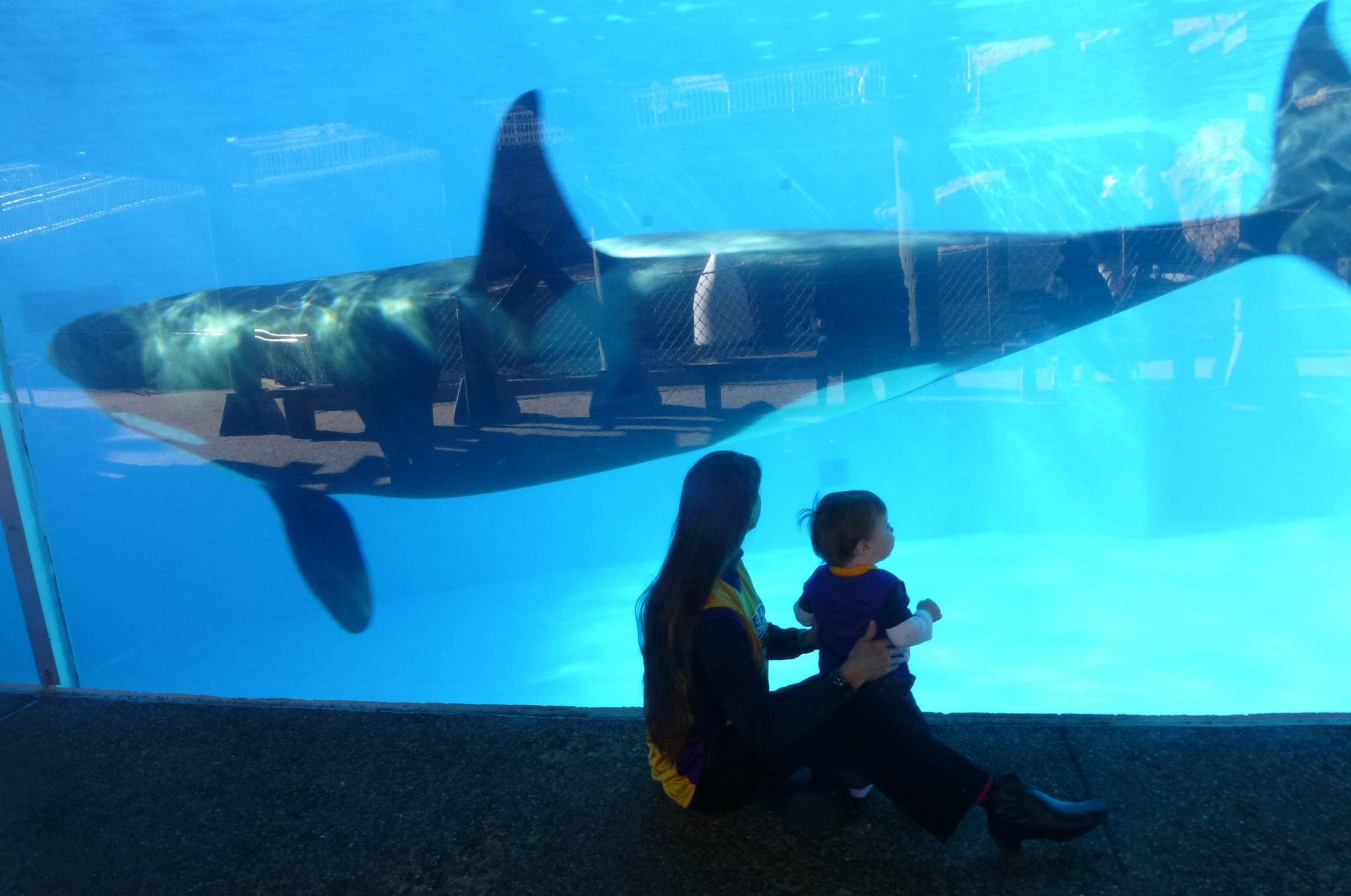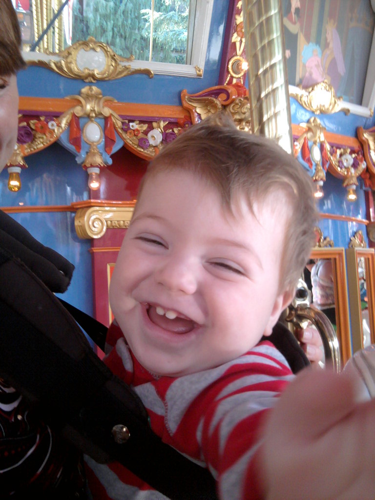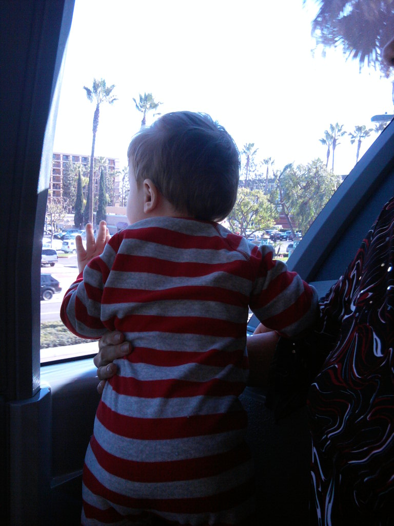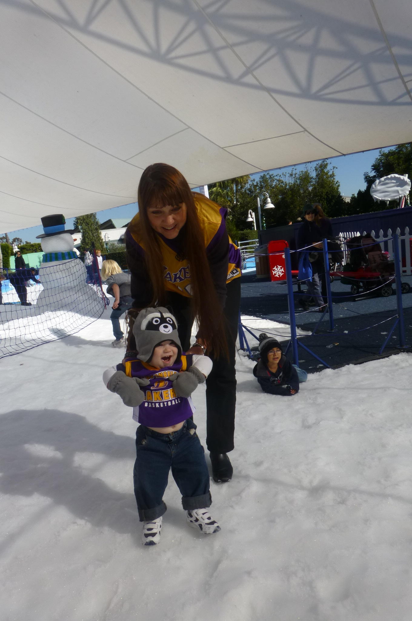 We went to Sea World for the last day of 2012, and you saw the biggest black and white “CAT!” you’ve ever seen in your life. I have to agree, that “cat” was pretty huge! You also walked around in their Snow World. It was pretty slippery and you would get your butt up and rock your weight to stand up, and then your butt would go back down. Rinse and repeat. After laughing because it was so cute, I finally helped you stand and walk on the slippery stuff and you loved it. You also really loved their big Christmas tree with all the BALLS on it. You getting your nap is always a concern huge cause of stress for me, and after my mommy-fail at our Queen Mary outing, I decided to take you to the car and nurse you and just let you sleep on me. With that strategy in place, I relaxed a bit and you ended up taking a 1.5 hour nap on my lap. It’s been a long time since you’ve slept on me, and I savored every second of watching your beautiful face while you slept, feeling and watching your chest rising and falling, and hearing your little sighs. I was thrilled to discover that you still smile and laugh in your sleep.