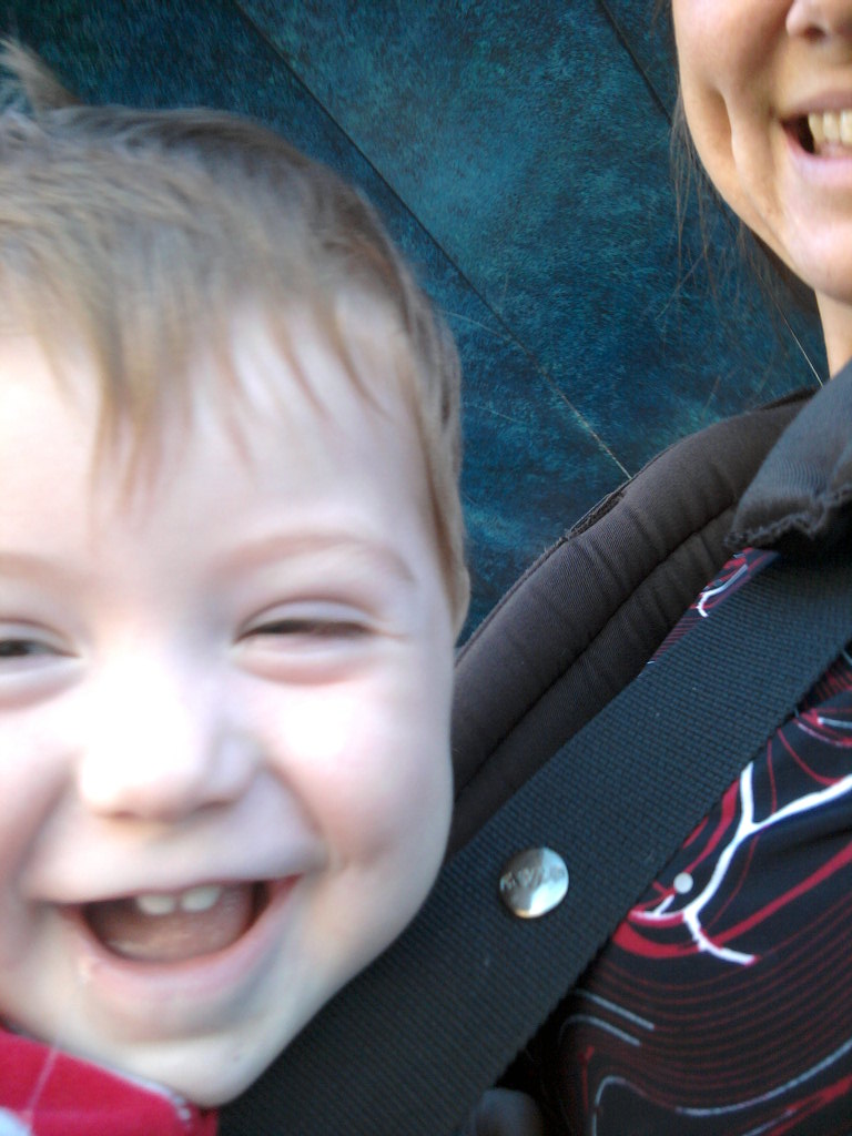 Food/Nourishment — you still nurse and you really seem to enjoy it. You haven’t really cut any nursing sessions out of your schedule, although you’ve shortened a couple of them, or are preferring to block feed. Your nursing hasn’t impacted the amount that I pump when I’m at work, so I know I have good and established supply. Studies have shown that breastmilk is a living fluid and contains all the nutrients and vitamins you need, and so even if you don’t “eat” all that well, as long as you nurse, I have confidence that you will be perfectly nourished and hydrated. Lately, your “solids” appetite has been off, and I’m attributing that to all these teeth you’re getting. That being said, though, food is not something I worry about with you. You love food… you prefer turkey or chicken over other meats. Broccoli, brussel sprouts, beans of any sort (kidney, green, etc.), peas, avocado, onions are favorite vegetables. Potatoes and sweet potatoes are always good. You haven’t found a fruit yet that you dislike. Banana, apple, pear, oranges, mango… the list goes on and on. The only thing I’ve found that you repeatedly and immediately spit out are carrots. You don’t really seem to care much for eggs, either. You like toast with butter, but French toast was a no go. You like to load your spoon yourself, and think it’s great fun to get things on it and hurry it to your mouth. You like the spoon to be right side up, and you actually get much of the food in your mouth. We’ve added raisins to the portable snack list, along with Cheerios and bananas. Those are things you’ll eat no matter what.