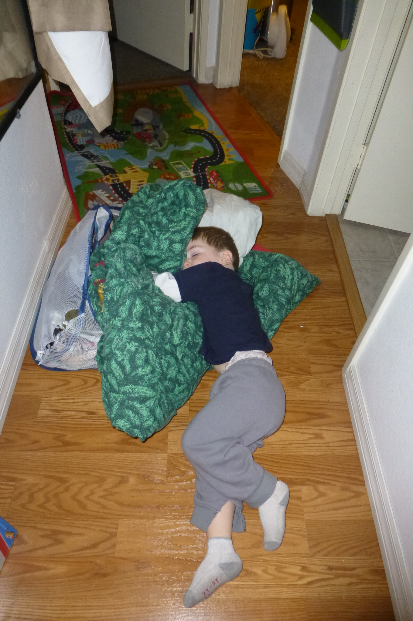 You loved having us home with you over the Christmas holiday, and we loved being able to spend that time with you. We had Christmas morning at our house, just the three of us. Then, after your nap, we went to your Grandpa and Grandma H.’s house for the evening meal. Your Grandma H. started a new tradition of letting you put baby Jesus into the nativity scene; it was very sweet. You love nativity scenes, and name the wise men, Mary, Joseph, baby Jesus and the angel… I’m so glad that one of my favorite nativity scenes, and one I purchased about 5 years ago, is a Little People set and totally kid friendly! You also managed to add your own decorations to our tree this year, a ladybug and gecko. Also, not pictured is your Lightning McQueen and Tow Mater Christmas ornaments.