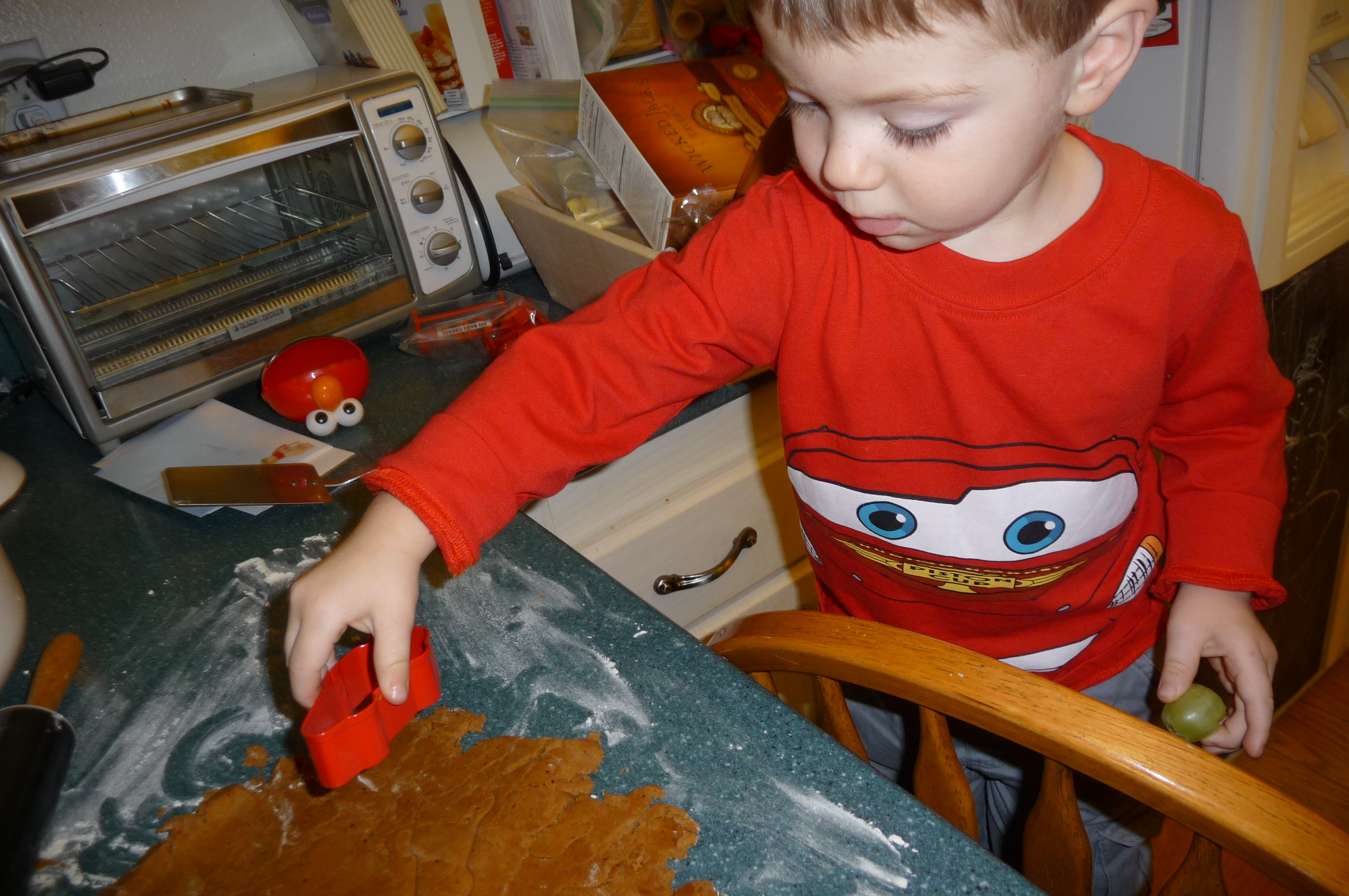 You and I made gingerbread cookies together for the first time, and it was one of those things I’ve always wanted to do with my own child, and now I have — making gingerbread cookies with my little boy! I loved involving you in this holiday tradition… and it was the cutest thing ever, when I put the first batch in the oven to bake, you whispered, “You can taste it?” I looked over and you had pulled some of the unbaked dough from the counter and were stealthily attempting to get it to your mouth, thinking I would forbid you because I had told you we had to wait to eat it. Well, everyone knows, eating cookie dough is a reward of baking… and so I told you it was OK. Because it is OK, that little bit of raw dough won’t hurt anyone.