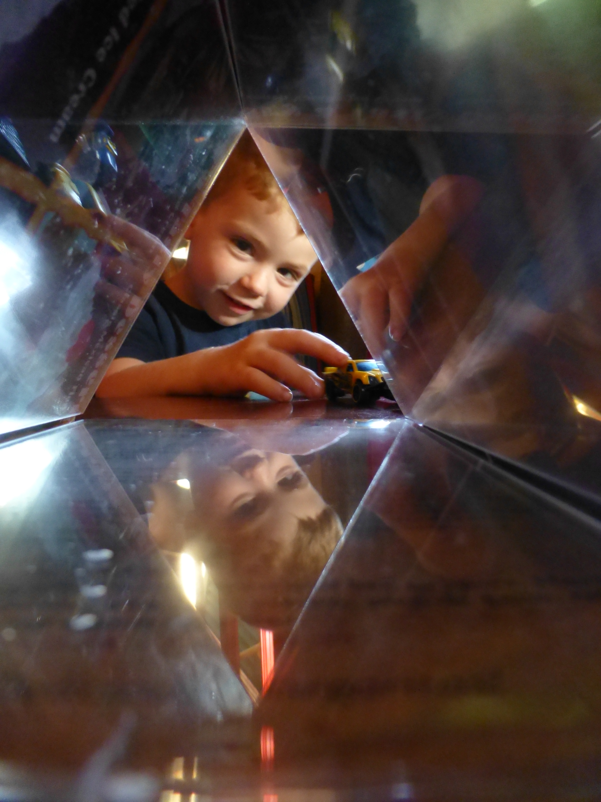 You have willingly used public toilets on several occasions this month. This is progress! Over the weekend, you have started to request the “big potty” and you want to sit on it backwards. It doesn’t look comfortable to me AT ALL, but it’s the only way you want to go. Perhaps this is a step towards learning to pee standing up? One benefit for you, is that there is a “shelf” of the toilet tank that you put your trucks on.
