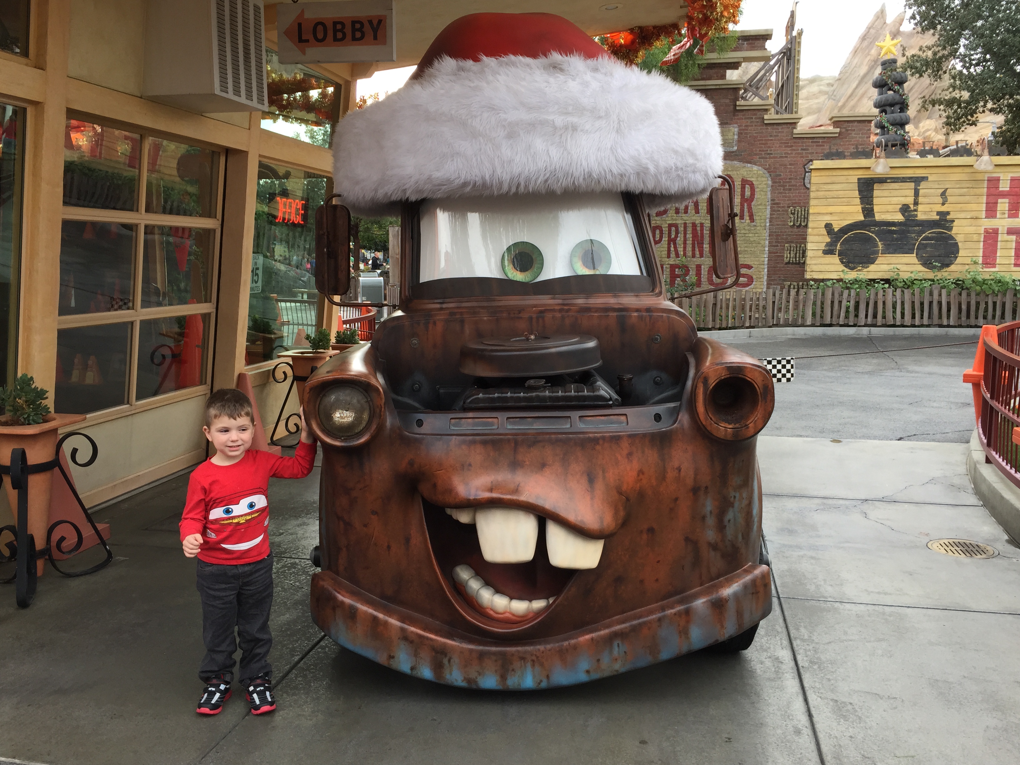 At California Adventureland, we went on Racers for the first time. For some reason, I thought riders have to be 42″ tall, but it’s really 40″ tall. You could have gone on it in September, I think. Oh well. You were really happy to go on it and loved the intro part of the ride and the racing part, but were terrified of the tunnel part of it. Especially at the start of the tunnel, where Mack is there and afraid and yells. It surprised us all! The ride shutdown at the end of the tunnel, and we were stuck on the tracks for about 10 minutes… and, because of that, we could have just stayed on and gone again, but you said you wanted to get off. Since then, we’ve been working with you to work through it, including watching the video of our ride. Now I think you’ve gone the exact opposite from being afraid to being amused, because every time we go under a bridge on the freeway, you tell me, “Yell at me like Mack!”