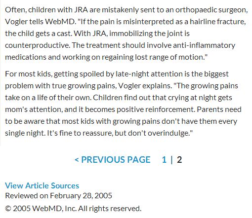 The way I see it is, at this age children are just learning to communicate, and how on earth does Dr. Vogler know beyond a doubt whether children experience growing pains every single night? They might. And even if they don’t, what is wrong with responding to your child when they cry? Just because it may not be a physical need, but an emotional one, does that make their need less valid somehow? In William’s example, I’m still not sure if it was his knees that were hurting him (joint pain), or his bones lengthening, because I’m not even sure how *I* would describe my bones hurting me to someone, and I have a much vaster vocabulary than he does at 3. So, if we (as parents/ adults), assume that a child is getting “spoiled by late night attention” or “overindulged” and refuse to go to them, doesn’t that cut off the ability to communicate, which is the heart of any relationship?