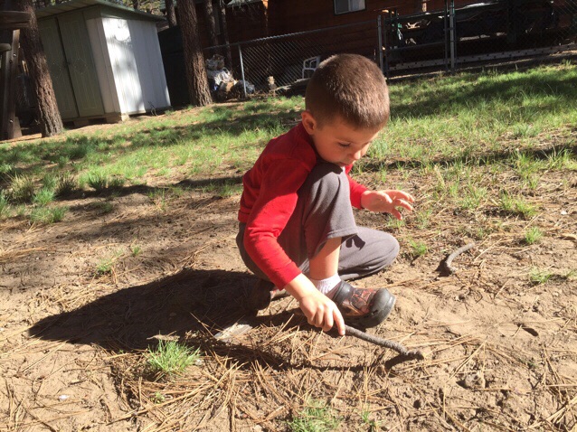 Picture: Digging in the dirt at our cabin, you were saying, “It must be here somewhere.” Curious, I asked, “What?” You replied, “Money!”