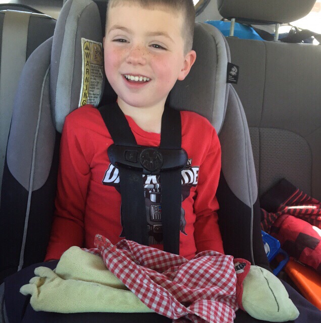Picture: Driving around, you placed Froggy on a pillow and informed us that “Froggy is asleep in his bed. I will wake him up when we get there.”