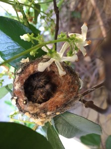 I’ve been following the tale of the baby hummingbirds just outside our front door for weeks now. I don’t know why hummingbird mommas like to build nests in this area. It’s such a high foot traffic area, what with all the Amazon deliveries. heh Also, our neighbor’s entry way is right there, too, since their front door is maybe 10′ away from ours… and they have a teenage boy and girl who go in and out all the time. Really, it’s kind of a mystery to me what’s so attractive about this walkway for hummingbirds. ANYWAY… last year’s hummingbird nesting didn’t end so well. The news got out in the neighborhood about our baby hummingbirds last year, and the neighborhood kids were over here pulling on branches and trying to see in the nest, and one day just a couple weeks after they had hatched, the babies completely disappeared. I want to believe that the momma bird relocated them, but I know that’s not very likely.