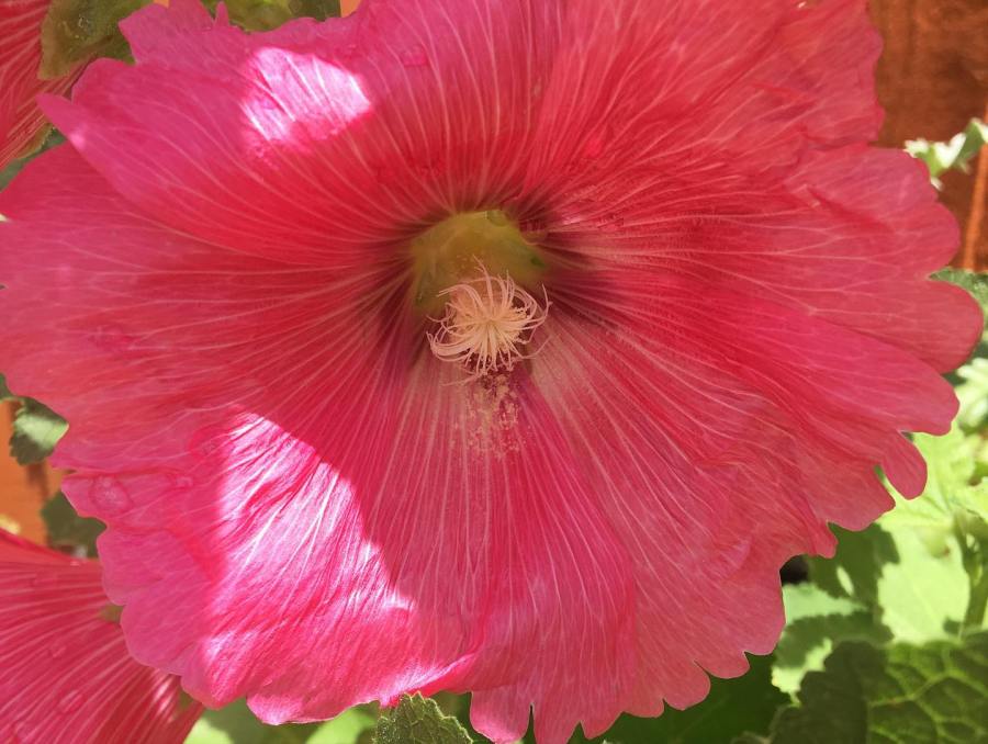 Hollyhocks are blooming.