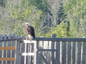 In our recent visit to Michigan, we visited the Husband’s aunt near Roger’s City. Upon our arrival, after settling in a bit, we went out on the quads, the sole mission to explore. I brought my cell phone, and figured that’d be good enough. Yet, we rounded the corner to the lake and sitting atop the lookout was a bald eagle. In the wild, a bald eagle!