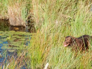 These photos of Buddy the dog were entitled by the Husband’s aunt: “Happiness is a romp in the swamp.”