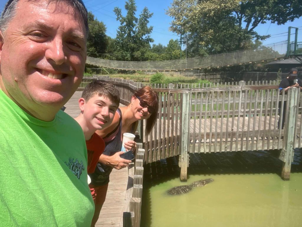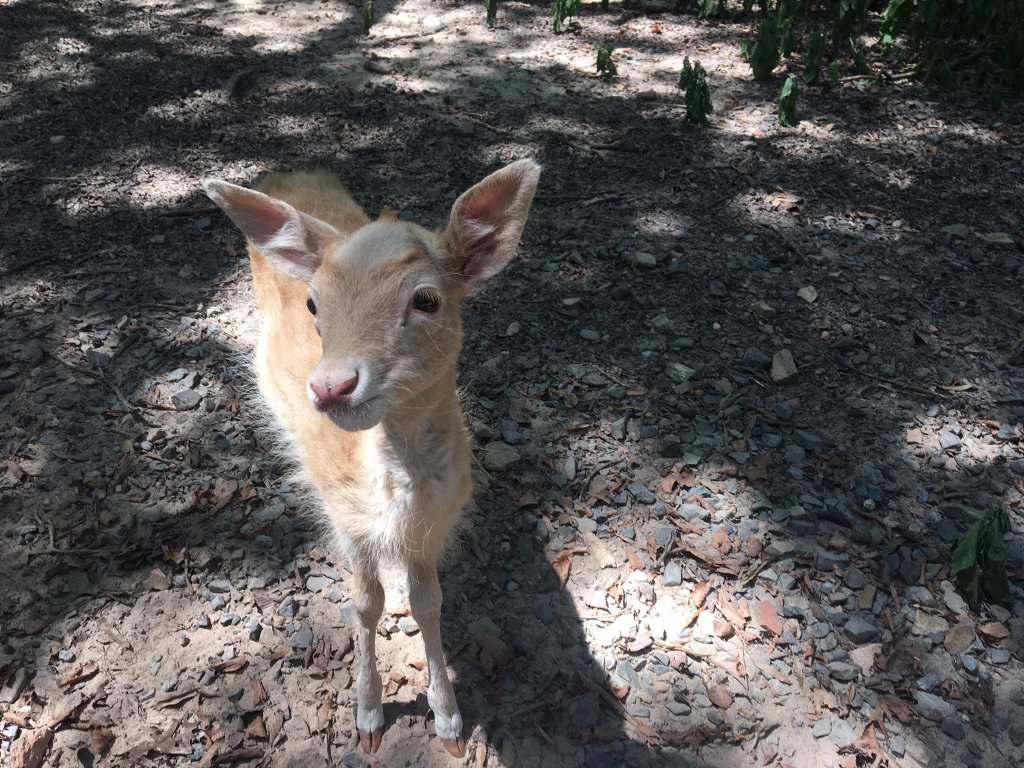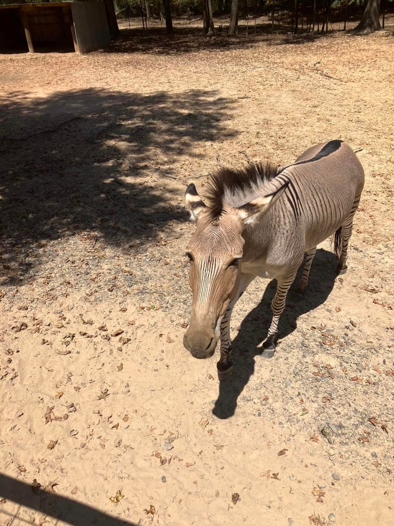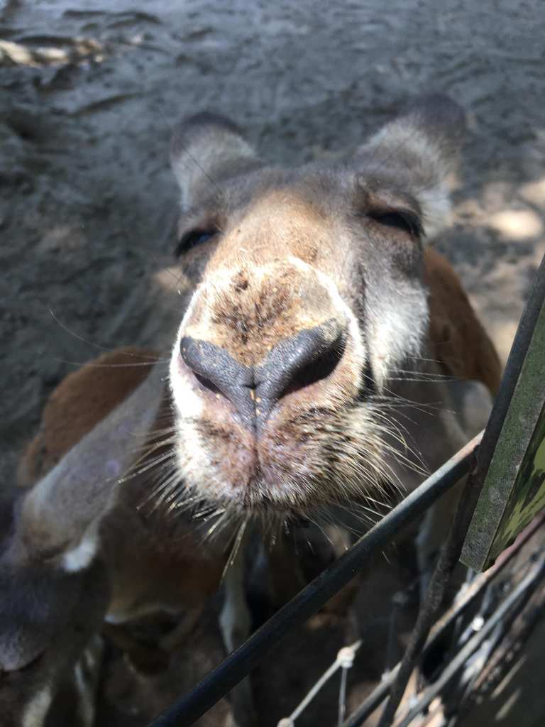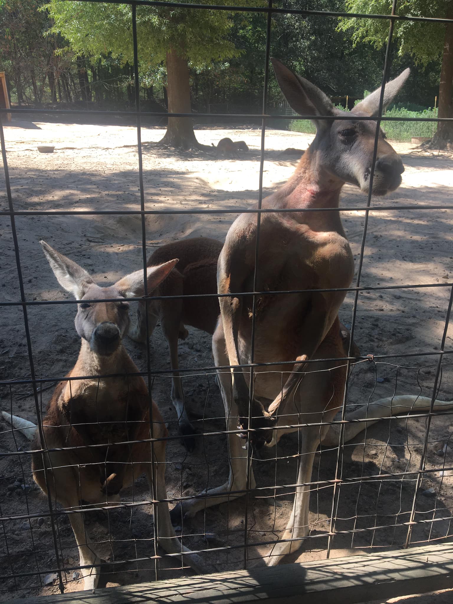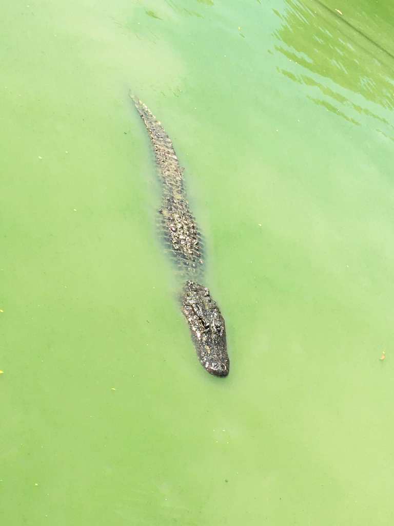 Gators & Friends Adventure Theme Park has many, many alligators of all sizes you can imagine. Big ones, medium ones, little ones, even (I’m certain) invisible ones. ha! We bought some animal food (you can feed everything except the meerkats and alligators, please), so we wandered through the park (again with the heat and humidity) with our animal food. The animals rushed us, starting with the fallow deer, then the kangaroos (OMG, roos!). I then encountered the miniature horses, who lifted up their right hoof and rhythmically knocked on their fence with it to get our attention. Yes, I fed them. There were two of them who turned their heads sideways and opened their lips so I could just pour a handful of food through their teeth and straight onto their tongue. I mean, WHO TRAINED WHO? They had a donkey/zebra (can’t remember what it’s called), lots of miniature goats and big goats, and lots of donkeys. We went over to watch them feed the big alligators – what a show. There was one that actually FLEW up out of the water to catch some of the food. Then it was time to hold the baby alligator… little guy was pretty chill and relaxed.