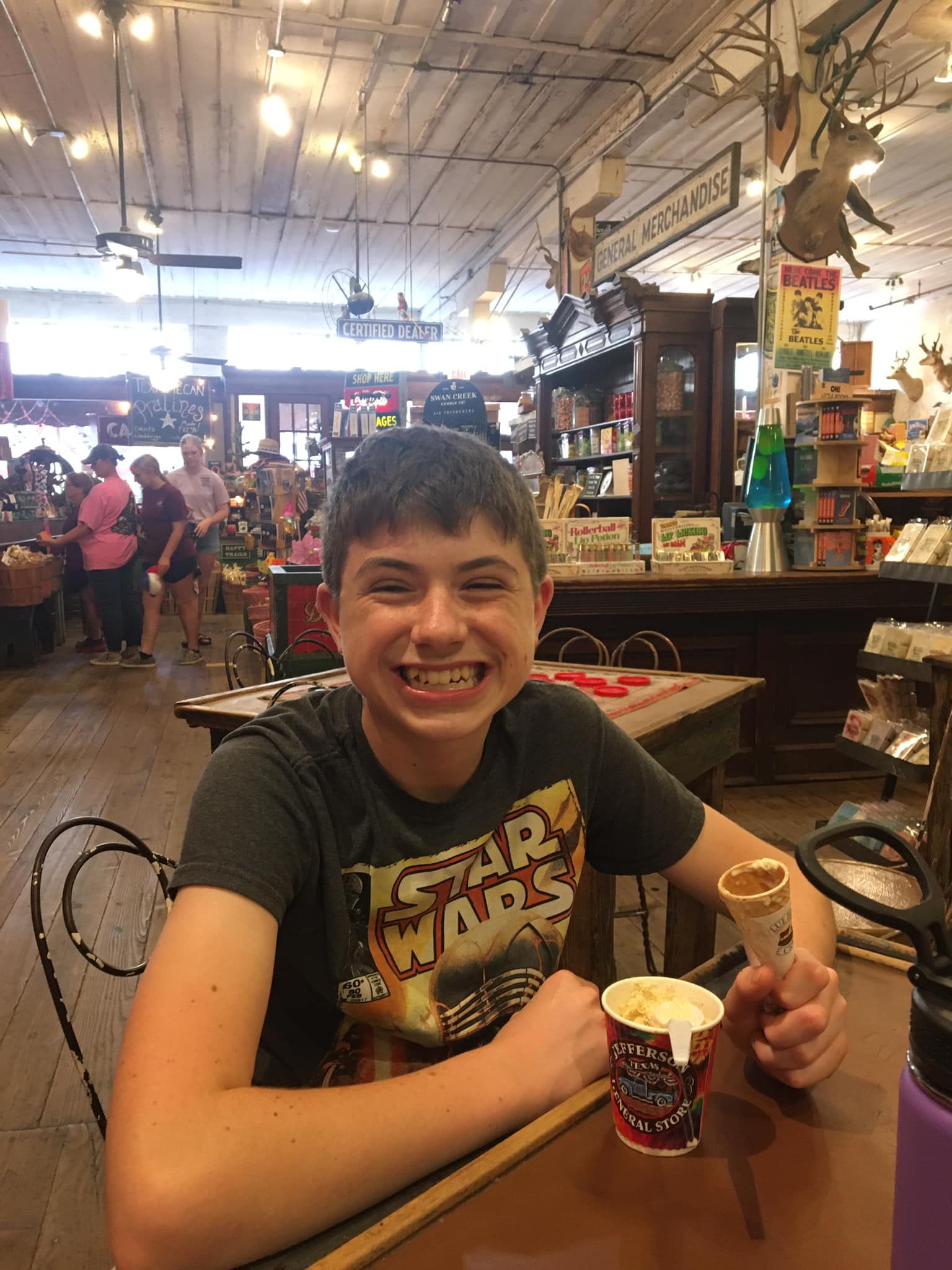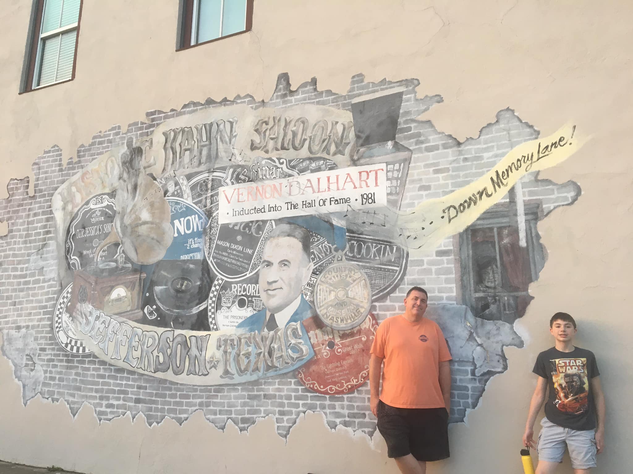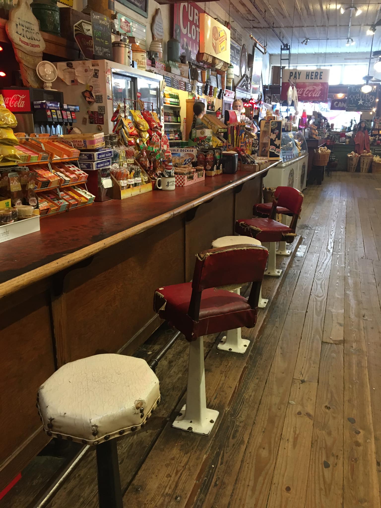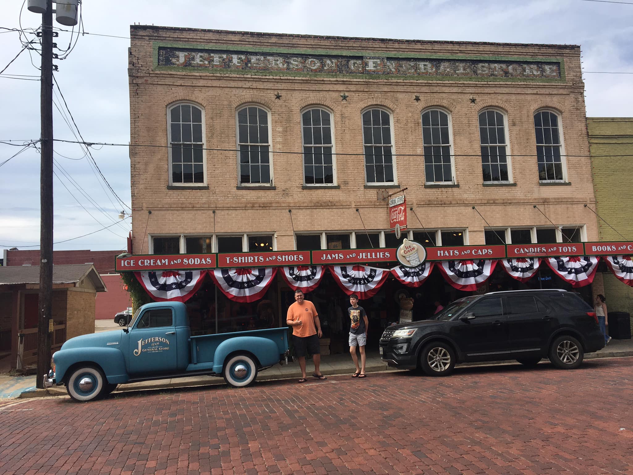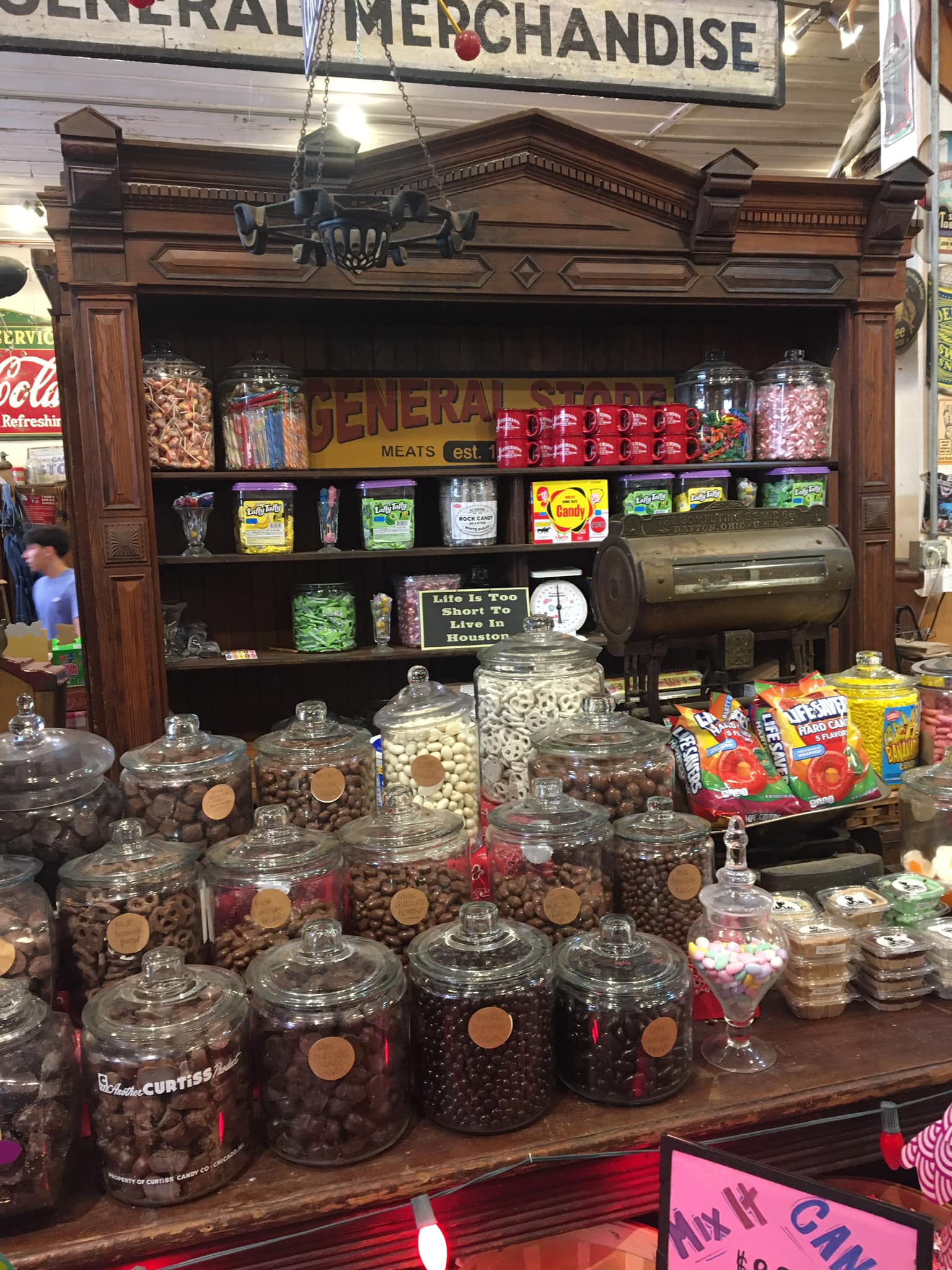 After the bus tour, we headed out on foot to some of the places that had been mentioned in the tour to take a deeper look. Several of the places I had previously marked in our plans for the day – such as the Bigfoot Statue, the previous Rail Car Tour (now closed because the owners retired last year), Jay Gould’s Rail Car and the Jefferson General Store. The aura in the Jefferson General Store was so neat. I could easily imagine it being a place where folks would buy their required necessities (fabric, flour, groceries) and the luxury fun items (candy out of buckets and ice cream). Since they now offer pre-made clothes and no groceries, we bought candy we can’t easily find anywhere (UNO bars, anyone??) and ice-cream (because it was super hot outside).