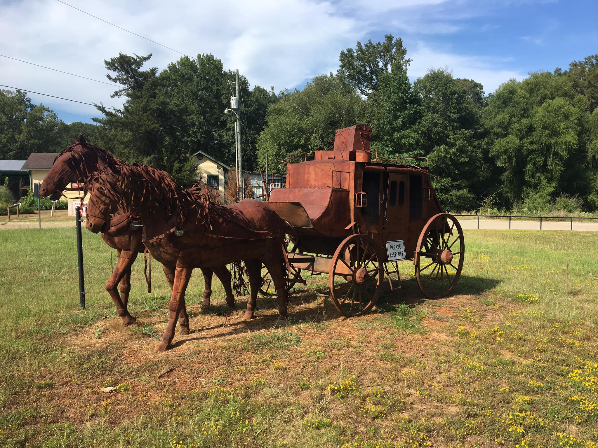 During our historical shuttle tour in Jefferson, the driver asked where we were staying. Upon learning that detail from us, he mentioned “a local artist who repurposes Volkswagen Bugs into art, who lives in the city of Uncertain.” He suggested we try to find the Bugs, because he said they are worth seeing.