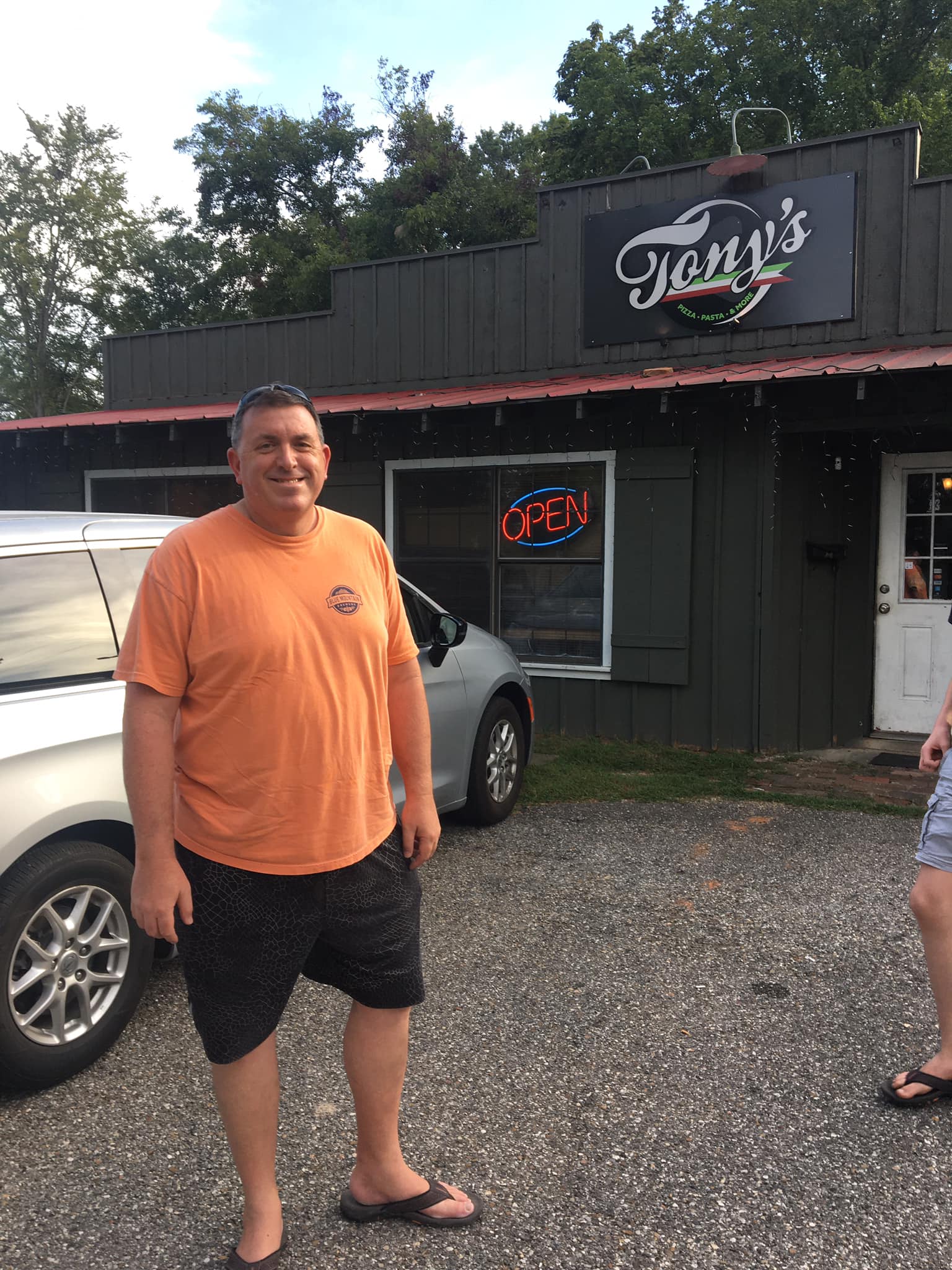 We finally decided we were hungry enough for dinner and headed to McGarety’s restaurant for the Husband’s birthday dinner. Unfortunately, they were “reservation only, or you can sit outside” – ha ha ha! I did mention it was hot, right? So, we walked a block away and saw an Italian restaurant named “Tony’s Pizza, Pasta & More” that the bus tour guide had mentioned for their pizza. Even though there were no cars parked out front, and no one inside but the employees, we bravely wandered in. Afterward, we agreed we were pleasantly surprised – the food was delicious and plentiful.