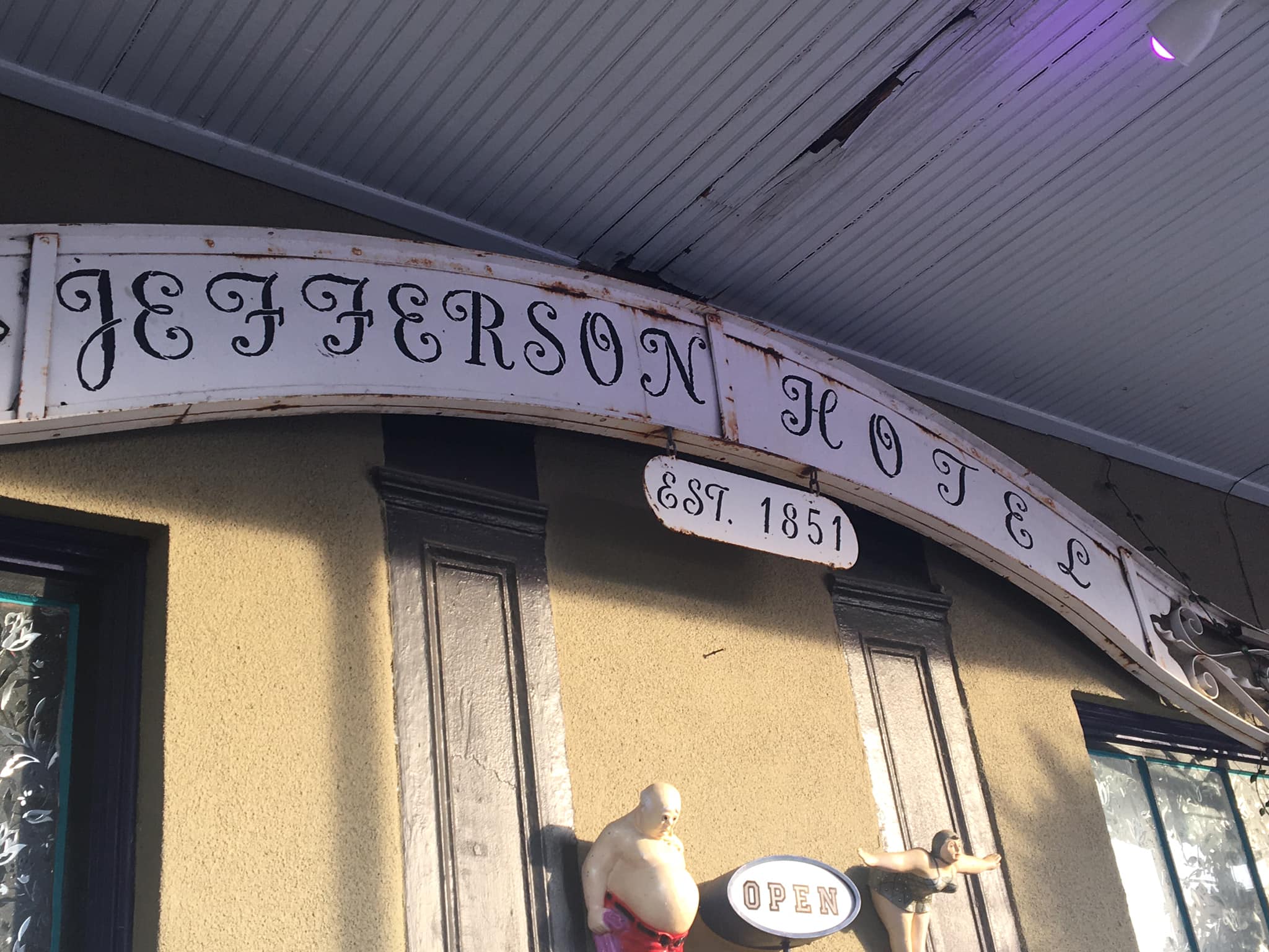 After dinner, we tooled around for awhile, got gas, went to the Dollar General, stopped at the tiny Brookshire’s grocery store and finally went over to the Kahn Hotel, where our Historical Jefferson Ghost Walk was to start just before sunset.