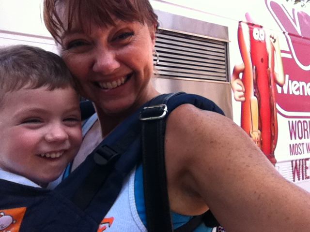 As it turned out, the hotel pool was pretty nice! They even had a private yard outside the pool that has trees and green grass and a side of BBQs, picnic tables and a couple hammocks to go with it. (Look! A silly selfie I found on my phone that Tony took of himself in one of the hammocks!) And, even better, the impromptu pool party invitation was well-received by my friend, Amanda (and her two kids) and they came over to the hotel to play! Also, my friend’s 4 year old son is going to be the next Thomas Edison, so he was enthralled by the light in the pool and spa which changed colors. I pretended that every time it changed color it either zapped or tickled me, but he wasn’t buying my silliness.