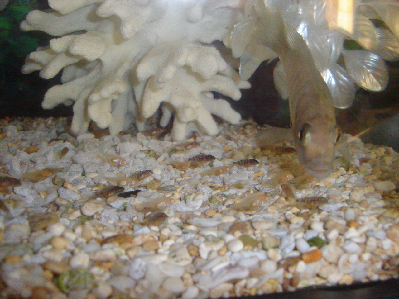 (Look below the momma fish at the rocks. Look closer. It’s not all rocks, there are baby fish there, one of those was the one who died on Friday.)