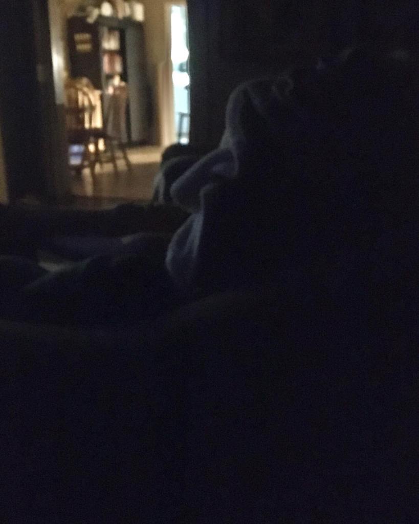 Random: I just walked out into our dimly lit living room and discovered a blanket person sitting on our couch. Do you see it’s profile, too?